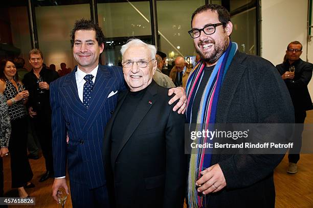 PARIS, FRANCE – OCTOBER 21: Architect Frank Gehry (C) with his sons Alejandro (L) and Sam (R) attend the ‘Frank Gehry’ : Exhibition in the presence of Frank Gehry who was elevated to the rank of Commander of the Legion of Honor this morning by the President of the French republic. Held at Centre Pompidou on October 21, 2014 in Paris, France. (Photo by Bertrand Rindoff Petroff/French Select/Getty Images)